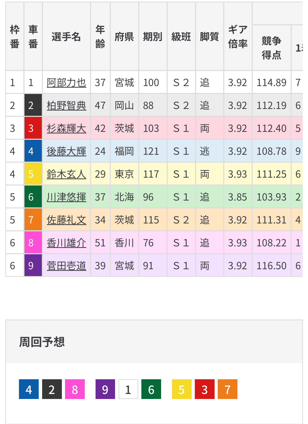 特に鈴木玄人が中団へのこだわりが異常に高く今節も初日に志田を内に封じ込めたりと絶対に好位置は開け渡さないタイプ。