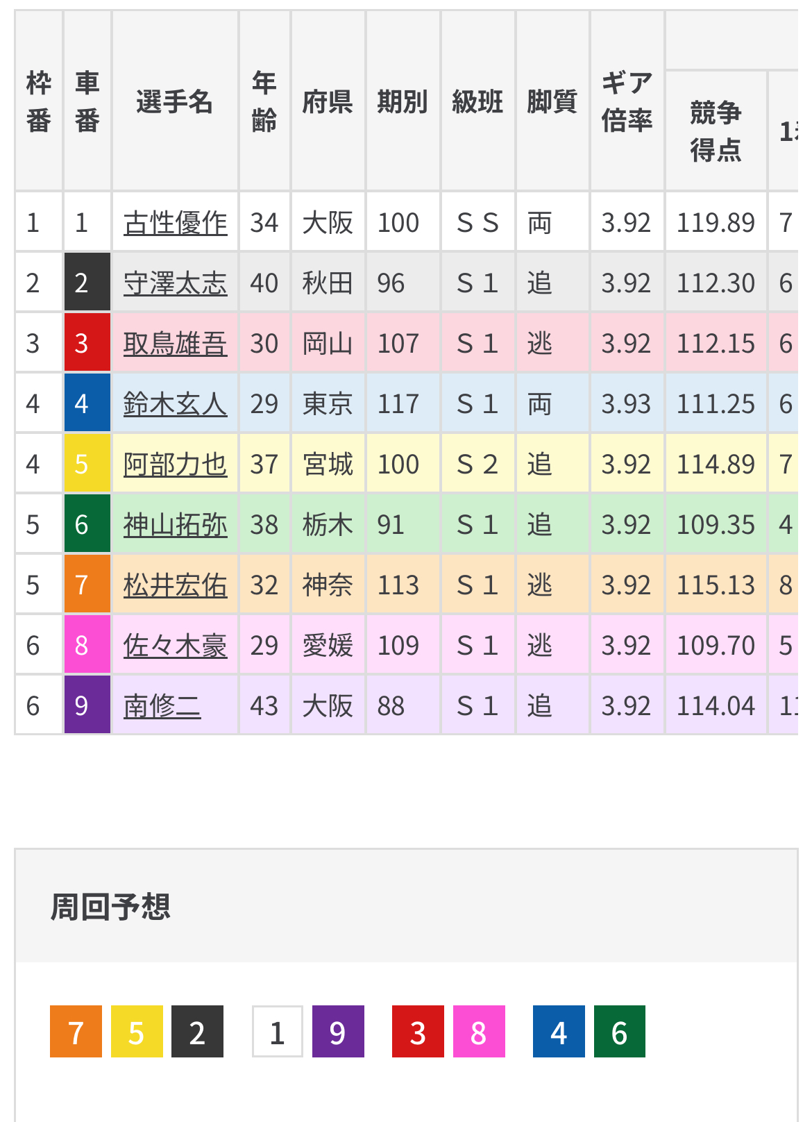 今なら古性に勝てるぞ!と言わんばかりの位置取りはこだわる玄人