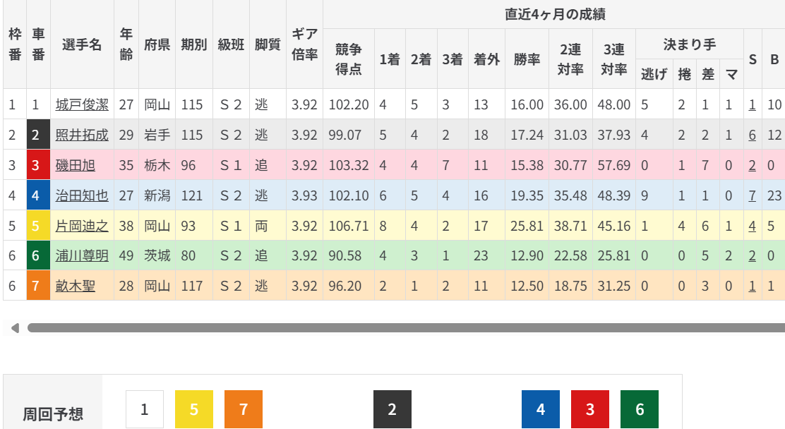 本人もかなり手応えはあるようで、何もせず4番手に待機しているなら捲りきれるはず。