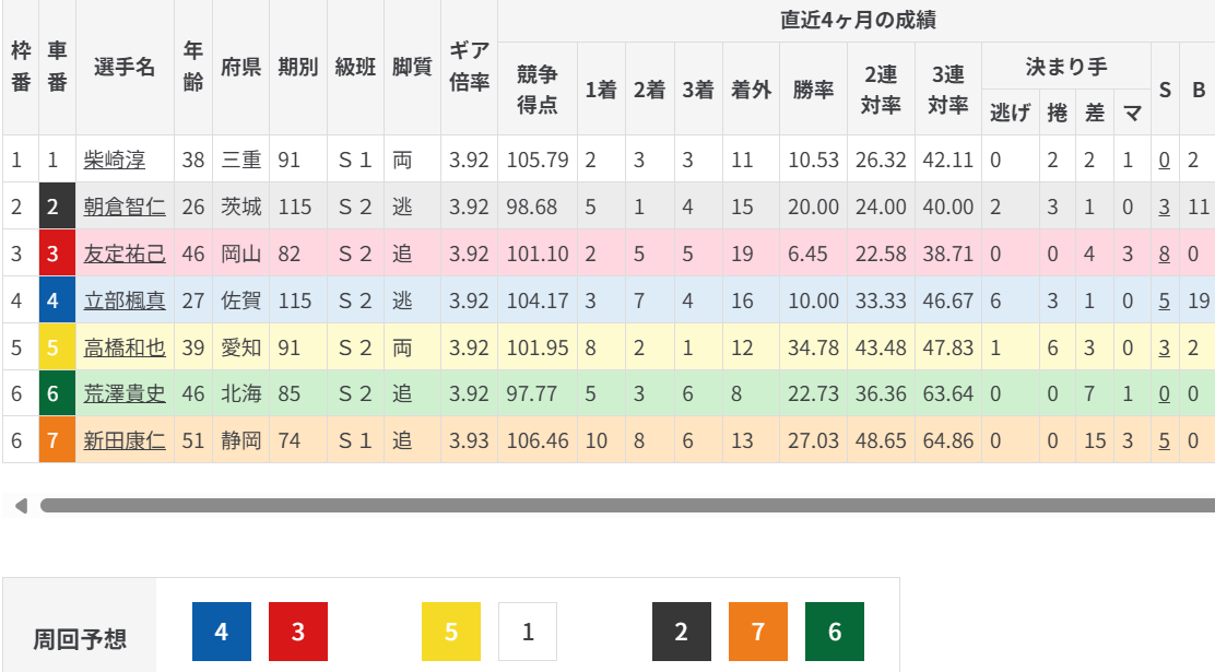[奈良10R : S級準決勝] (民間締切時刻 14:53)