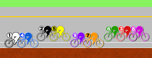 結果諸々動きあったのちに、❾伊藤と❷佐々木が前に出て❶堀江が出てくるのを待つ形でスローな展開になる。