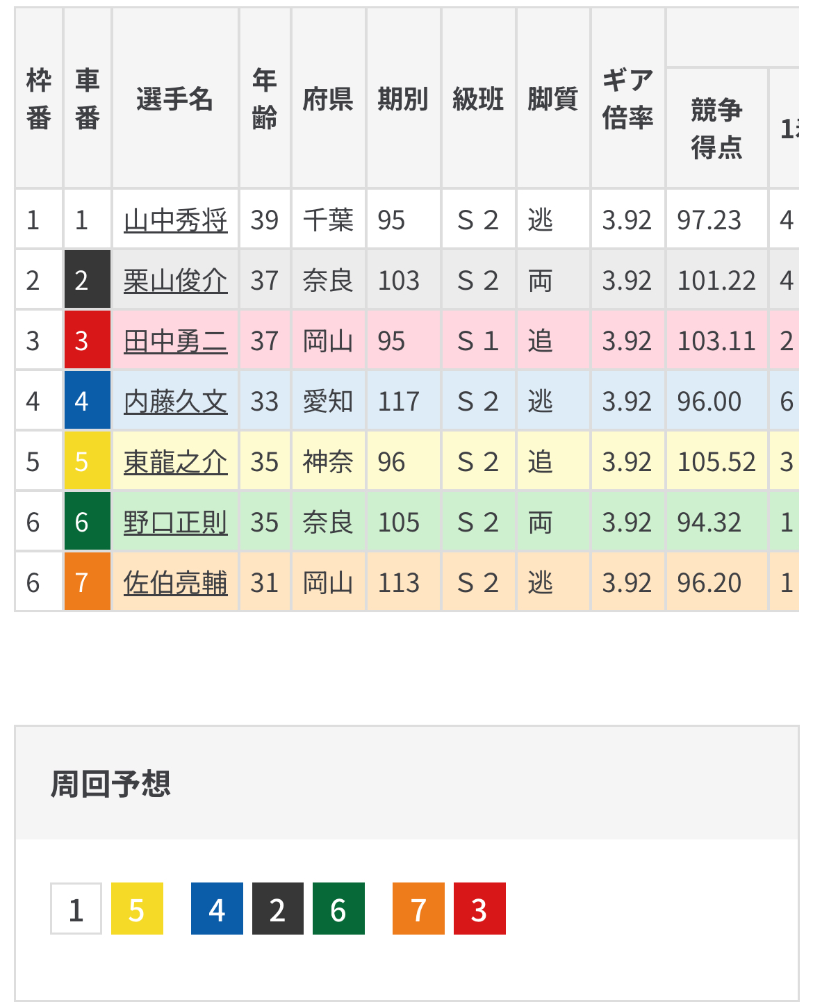 なんだかやるのかやらないのか曖昧すぎる佐伯が目標なのは幸か不幸かよくわかりませんが、逃げてくれたらそれはそれでキッチリ抜け出すだけだし、叩けないならそれで佐伯を捨てて自ら踏んでの突き抜ける脚はある田中は狙い目に必要な一車。