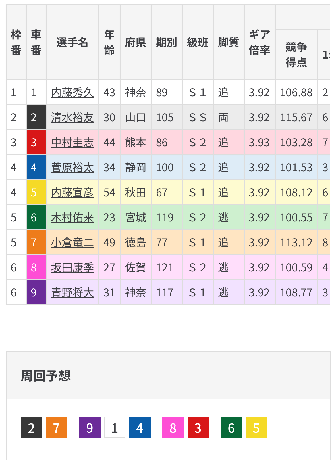 人気背負う清水は昨日の特選で前中団を楽に奪いあそこからひと捲りで勝負あり!