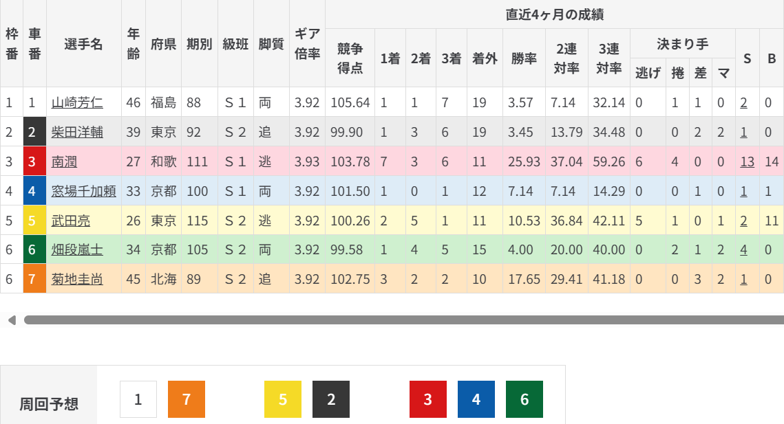 さすがに展開向くであろう④窓場は頭固定として、⑦菊地を2.3着固定で勝負する。
