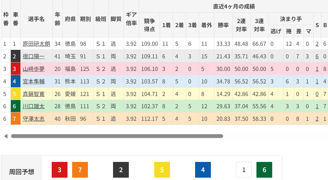 ④宮本もしくは⑤真鍋が捲りきると見て45-3457-3457で勝負する。