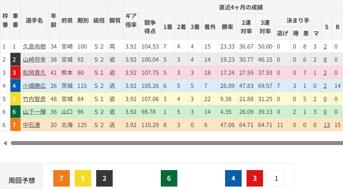 ここもきっちりスタートから展開を作り、752/6/431の形で突っ張りから打鐘。