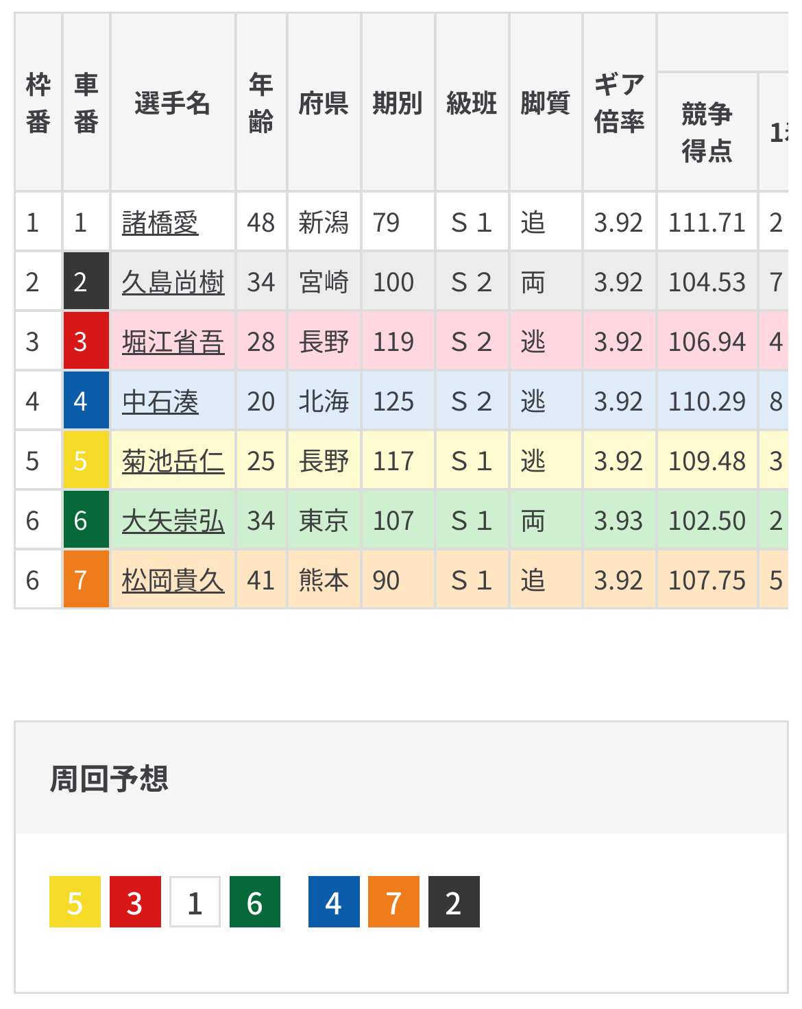 中石の番手松岡も他地区の若手が先行するならもちろん援護に徹して中石が完封してきそうだ。