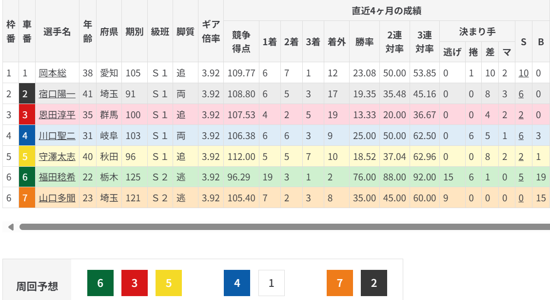 ただ地元を背負っているので早めの仕掛けになるだろうが、③恩田も脚が良いので④川口が止まる可能性は見ておきたい。